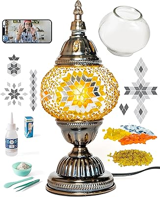 KRAFTSTORIES Turkish Mosaic Lamp Kit DIY Glass Decorative Table Bedside Night Light Tabletop for Living Room Bedroom | Make Your Own Lamp | Antique Bronze Base Amber Sultan