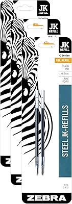 Zebra Pen G-Series Stainless Steel Gel Ink Pen JK-Refill, Fine Point, 0.5mm, Black Ink, 2 Count Pack of 3